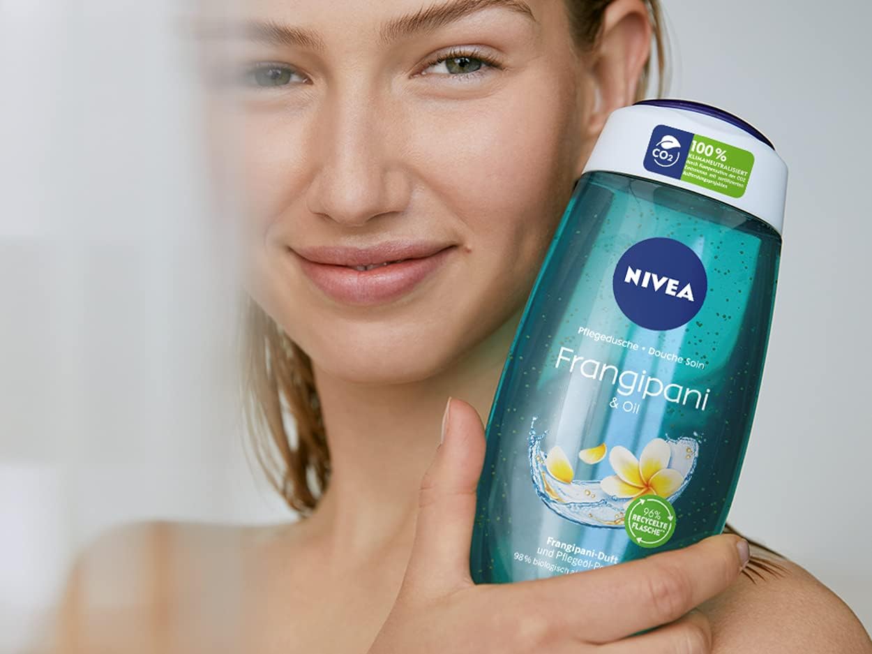 Good for skin and environment: the care formula without microplastics works in balance with the skin’s own microbiome and is 98% biodegradable. The bottle is also made from 96% recycled material (without cap and label). Every shower experience is transformed into a pampering care moment with NIVEA – with the NIVEA Frangipani & Oil care shower.