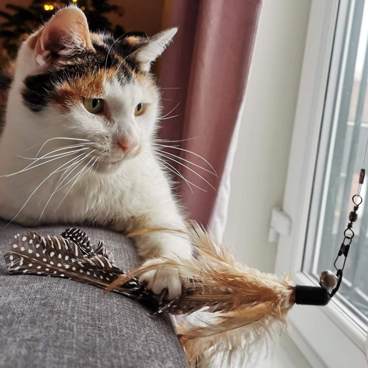 INTERACTIVE FUN: Keep your playful pet entertained with this engaging teaser, featuring feathers and a bell for hours of stimulation