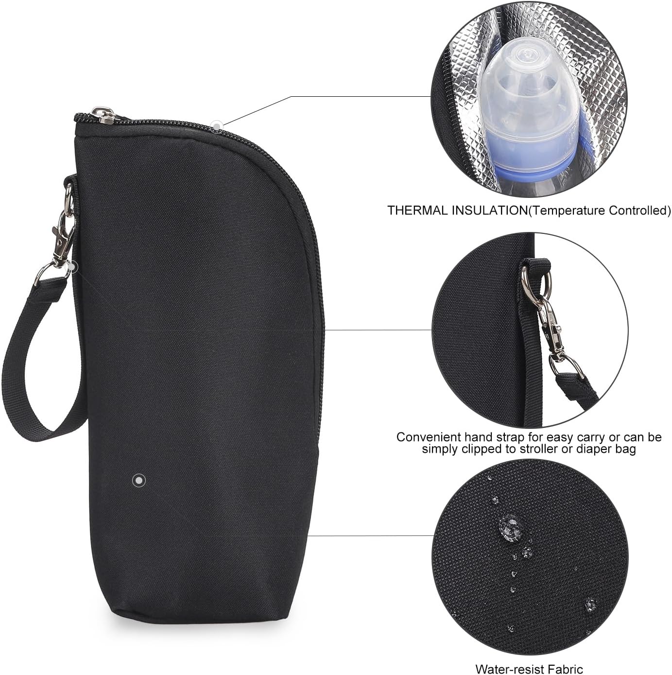 【Easy to Clean】The portable bottle warmer bag’s outer layer is waterproof fabric, waterproof and moisture-proof, not easy to get dirty, and easy to clean, the inner layer is aluminum foil liner, you can wipe it gently with a damp cloth or paper towel, the bottle bag is zippered closed, easy to operate, easy to store or remove the bottle.